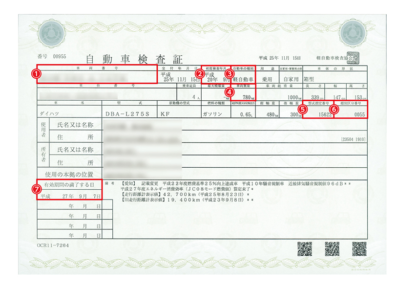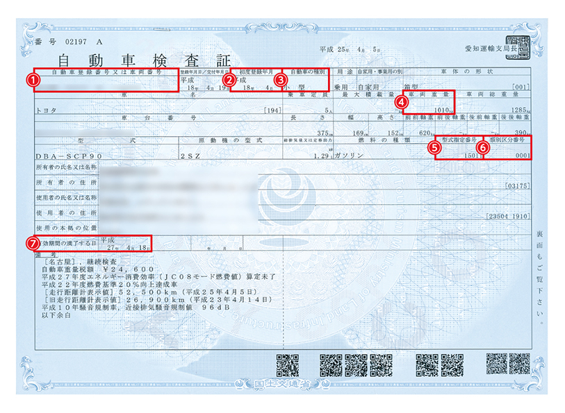 このボタンをクリックする事で車検証の記入箇所がご確認頂けるので便利です。